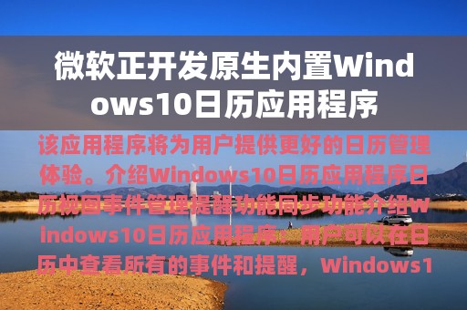 微软正在开发原生内置Windows10日历应用程序,该应用程序将为用户提供更好的日历管理体验。本文将介绍该应用程序的功能和特点。