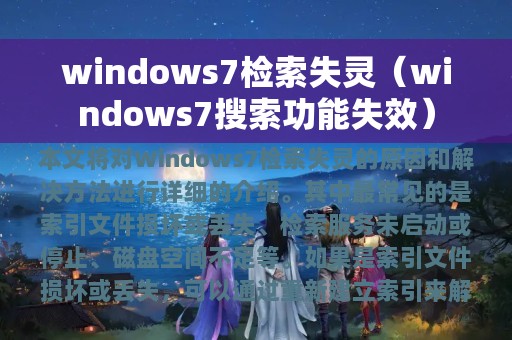 Windows7检索失灵的原因有很多,其中最常见的是索引文件损坏或丢失、检索服务未启动或停止、磁盘空间不足等。
