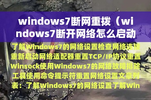 Windows 7是广泛使用的操作系统,但在使用过程中,我们可能会遇到断网的情况。当我们无法连接到互联网时,我们需要重新连接。本文将介绍如何在Windows 7上断网重拨。以下是本文的大纲目录: