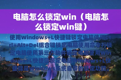 随着科技的发展,电脑已经成为人们生活和工作中必不可少的一部分。然而,有时候我们会需要将电脑锁定,以保护我们的隐私和数据安全。那么,电脑怎么锁定win呢?下面是一些简单易行的方法。