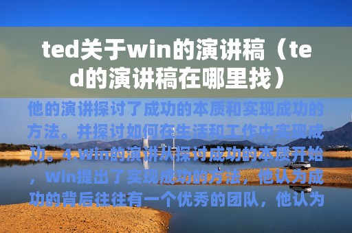 2. Win是TED的创始人,他的演讲探讨了成功的本质和实现成功的方法。
