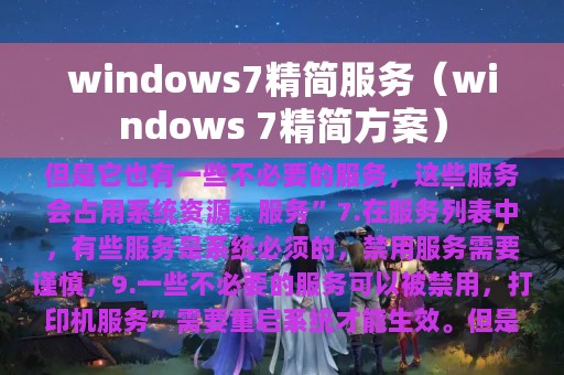 3. 本文将介绍如何精简Windows 7的服务。