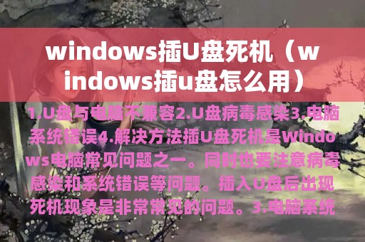 在使用Windows电脑的过程中,插入U盘后出现死机现象是非常常见的问题。以下是造成这一问题的原因和解决方法: