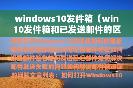 Windows 10发件箱是我们日常工作中经常使用的一个功能,它可以帮助我们发送电子邮件,提高工作效率。本文将围绕Windows 10发件箱展开,介绍它的使用方法、注意事项以及一些常见问题的解决方案。下面是本文的大纲目录。