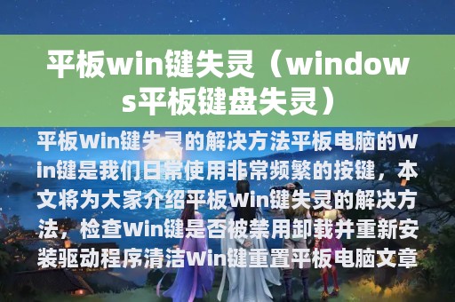 平板电脑的Win键是我们日常使用非常频繁的按键,但有时候会出现失灵的情况,让人十分苦恼。本文将为大家介绍平板Win键失灵的解决方法,帮助大家解决这一问题。