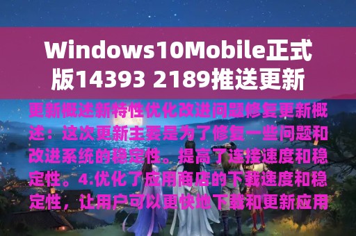 随着Windows 10 Mobile正式版14393.2189的推送更新,许多用户都在期待这次更新所带来的变化。本文将为您详细介绍这次更新的内容。