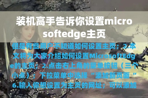 1. 设置Microsoft Edge主页可以让你更快捷地访问你常用的网站;