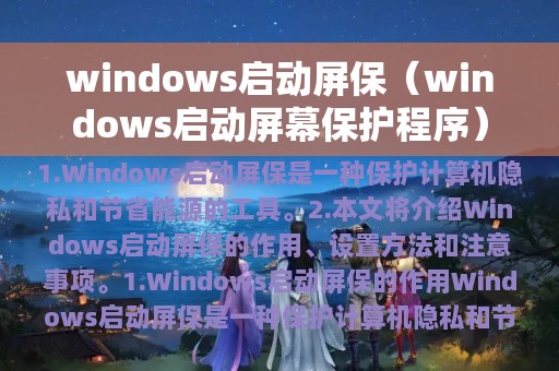 2. 本文将介绍Windows启动屏保的作用、设置方法和注意事项。