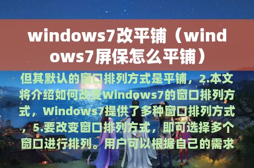 1. Windows 7是一款广受欢迎的操作系统,但其默认的窗口排列方式是平铺,不够灵活。