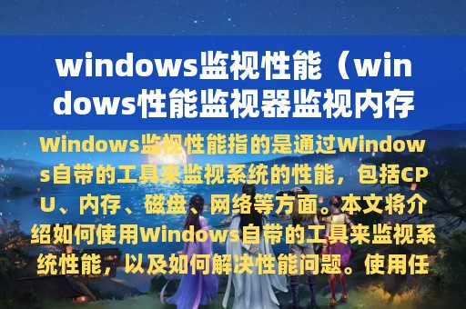 Windows监视性能指的是通过Windows自带的工具来监视系统的性能,包括CPU、内存、磁盘、网络等方面。本文将介绍如何使用Windows自带的工具来监视系统性能,以及如何解决性能问题。