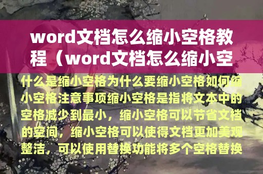 缩小空格是指将文本中的空格减少到最小,以达到节省空间的目的。缩小空格可以使文档更加美观整洁,也可以使排版更加紧凑。