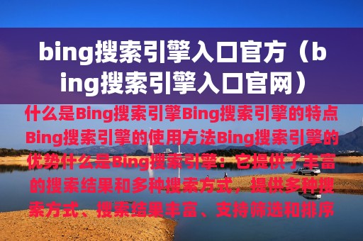 Bing搜索引擎是微软公司开发的一款搜索引擎,它提供了丰富的搜索结果和多种搜索方式,用户可以通过关键词来获取相关信息。