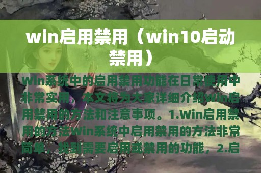 Win系统中的启用禁用功能在日常使用中非常实用,可以帮助我们快速地解决一些问题。但是,有很多人对于如何启用禁用不是很了解。本文将为大家详细介绍Win启用禁用的方法和注意事项。