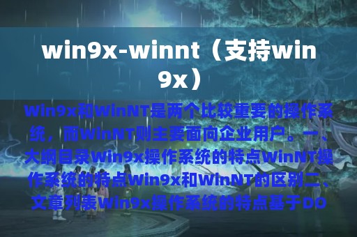 随着计算机技术的不断发展,操作系统也在不断地更新换代。Win9x和WinNT是两个比较重要的操作系统,其中Win9x主要面向家庭用户,而WinNT则主要面向企业用户。本文将围绕这两个操作系统展开,介绍它们的特点以及区别。