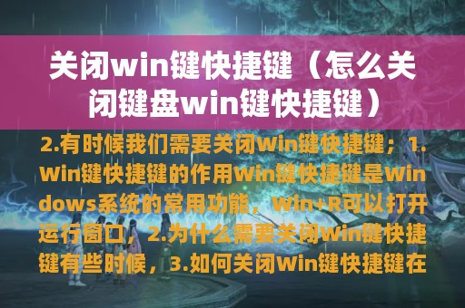 3. 本文将介绍如何关闭Win键快捷键。