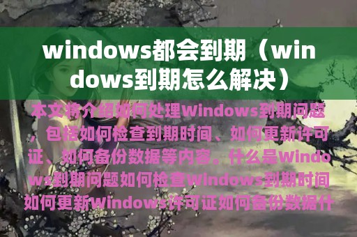 Windows操作系统有一个到期时间,一旦到期,用户将无法获得更新和安全补丁。这将对计算机的安全性和性能产生负面影响。因此,了解如何处理Windows到期问题非常重要。