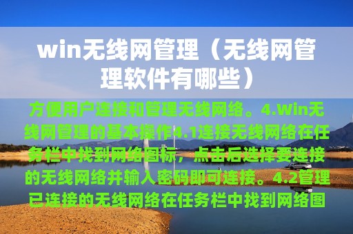 3. 本文将介绍Win无线网管理的基本操作和常见问题解决方法。