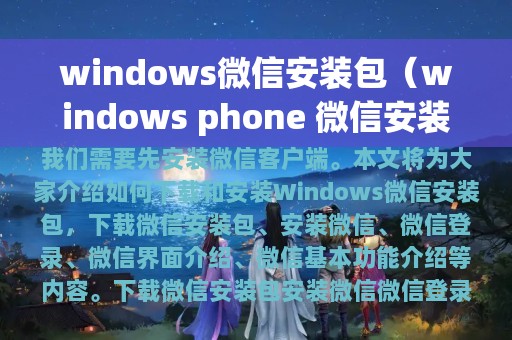 随着微信的普及,很多人都使用微信进行社交、工作等方面的沟通。但是,在使用微信之前,我们需要先安装微信客户端。本文将为大家介绍如何下载和安装Windows微信安装包,以及安装后的基本使用方法。本文主要分为以下几个部分:下载微信安装包、安装微信、微信登录、微信界面介绍、微信基本功能介绍等内容。
