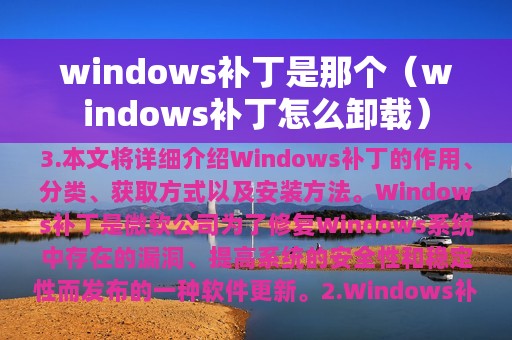 Windows补丁是微软公司为了修复Windows系统中存在的漏洞、提高系统的安全性和稳定性而发布的一种软件更新。补丁可以修复系统中的各种漏洞,包括安全漏洞、功能漏洞等。