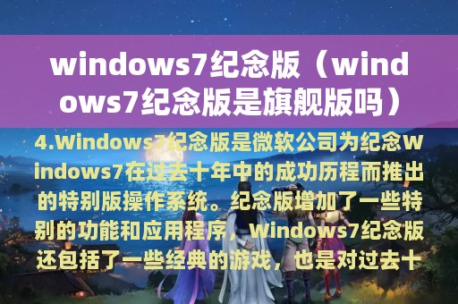 3. 本文将介绍Windows 7纪念版的特点和意义。