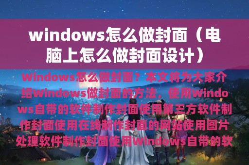 Windows怎么做封面?这是很多人在使用Windows操作系统时都会遇到的问题。本文将为大家介绍Windows做封面的方法,包括以下内容:
