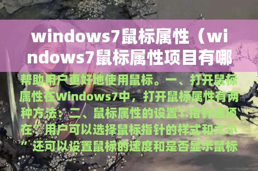 导读:Windows7是一款广泛使用的操作系统,鼠标是其中不可或缺的一部分。本文将介绍Windows7中鼠标属性的设置方法和功能,帮助用户更好地使用鼠标。