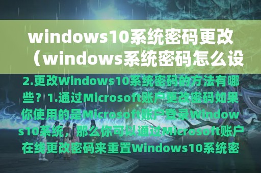 2. 更改Windows 10系统密码的方法有哪些?