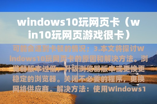 3. 本文将探讨Windows10玩网页卡的原因和解决方法。