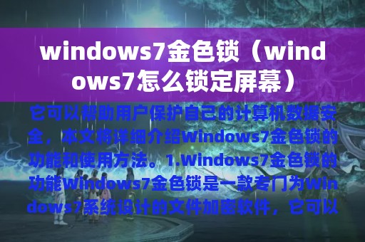 Windows7金色锁是一款非常实用的软件,它可以帮助用户保护自己的计算机数据安全,防止未经授权的访问。本文将详细介绍Windows7金色锁的功能和使用方法。