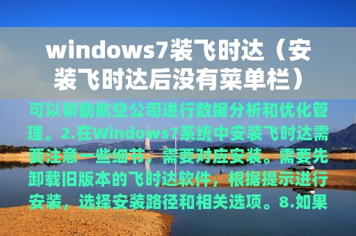 2. 在Windows 7系统中安装飞时达需要注意一些细节,本文将为您详细介绍。