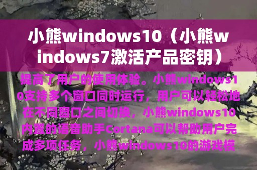 3. 本文将介绍小熊windows10的主要特点和优势。