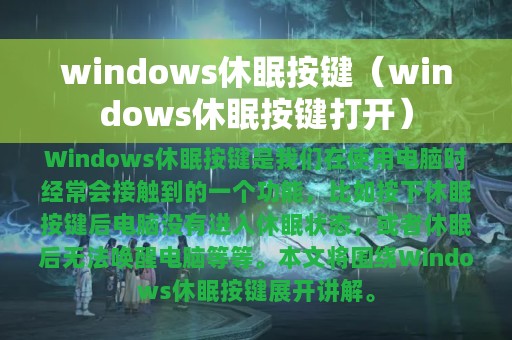 Windows休眠按键可以让电脑进入睡眠状态,从而节省电力和延长电脑寿命。