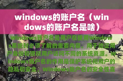 Windows账户名是Windows系统中用于识别不同用户的名称。每个Windows账户名都有一个相关联的密码,用于验证用户身份和授权用户访问不同的系统资源。Windows账户名的作用是保护系统和用户的隐私和安全,防止未经授权的访问和操作。