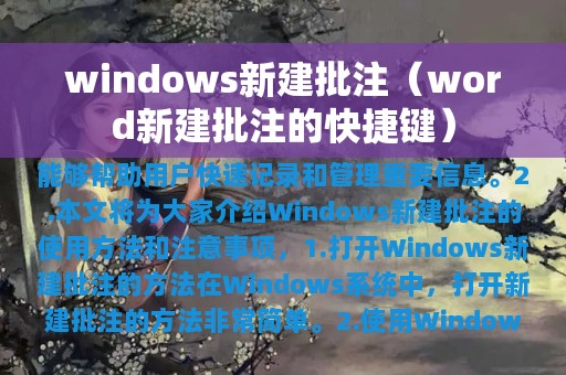 2. 本文将为大家介绍Windows新建批注的使用方法和注意事项,帮助用户更好地利用这一功能。