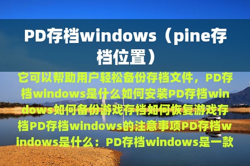 本文为大家介绍了PD存档windows的使用方法和注意事项,希望能帮助到广大游戏玩家。