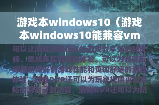 游戏本Windows 10是一款专门为游戏而设计的电脑操作系统。它采用了全新的DX12技术,可以让游戏玩家在运行游戏时享受更加流畅、更加真实的游戏体验。同时,游戏本Windows 10还拥有更加智能的游戏模式,可以为游戏玩家提供更好的游戏性能和更加舒适的游戏体验。