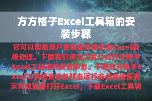 方方格子Excel工具箱是一款非常实用的Excel插件,它可以帮助用户更加高效地完成Excel表格处理。下面我们将为大家介绍方方格子Excel工具箱的安装步骤。