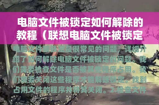 导读:电脑文件被锁定是很常见的问题,这时候我们需要知道如何解除它。下面是一份教程,详细介绍了如何解除电脑文件被锁定的问题。