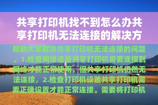 共享打印机需要正确设置才能正常连接。在共享打印机的电脑上,需要将打印机设置为共享状态,并确保打印机名称正确。如果打印机设置不正确,则需要重新设置。