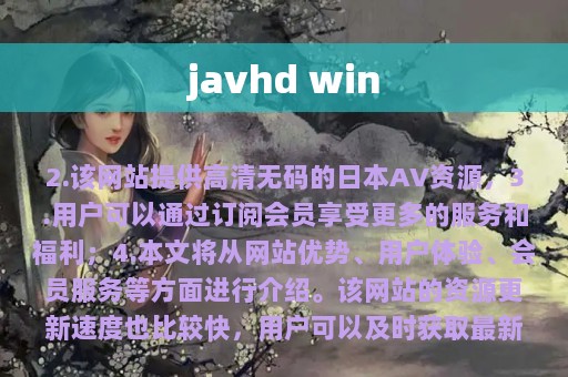 JavHD Win作为日本AV在线视频网站,其最大的优势在于提供高清无码的日本AV资源。而且,该网站的资源更新速度也比较快,用户可以及时获取最新的影片资源。此外,JavHD Win的网站界面简洁明了,搜索功能也比较方便,用户可以很快找到自己想要观看的影片。