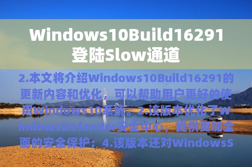 2. 本文将介绍Windows10Build16291的更新内容和优化,以及对用户的影响;