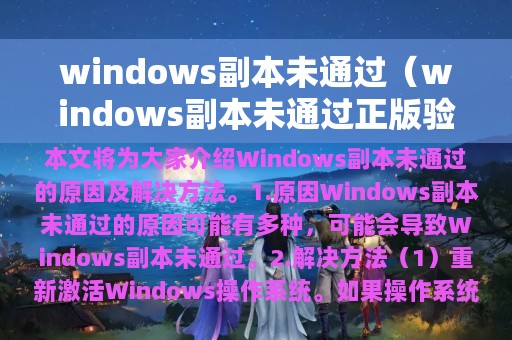 Windows副本未通过的原因可能有多种,其中最常见的原因是操作系统的激活状态过期或者被篡改。此外,如果电脑中安装了其他软件,可能会导致Windows副本未通过。