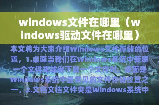 在Windows系统中,文件的存储位置有很多种,包括桌面、文档、下载、图片、视频和音乐等等。了解这些存储位置可以帮助我们更好地管理自己的文件,方便我们快速找到需要的文件。