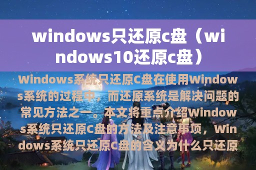 在使用Windows系统的过程中,不可避免地会遇到一些故障问题,而还原系统是解决问题的常见方法之一。本文将重点介绍Windows系统只还原C盘的方法及注意事项,帮助大家更好地解决故障问题。