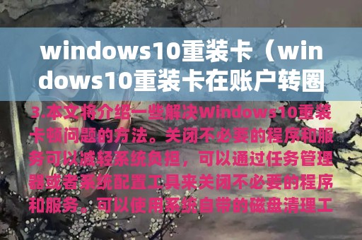 3. 本文将介绍一些解决Windows10重装卡顿问题的方法。
