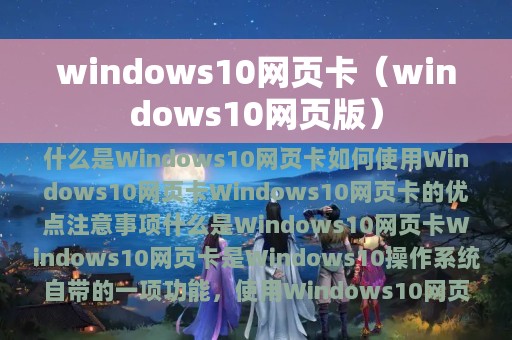 Windows 10网页卡是Windows 10操作系统自带的一项功能,它可以让用户在同一窗口中同时打开多个网页,实现多任务处理。使用Windows 10网页卡可以极大地提高用户的工作效率。