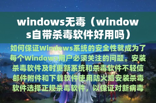 Windows系统是目前全球使用最广泛的操作系统之一,但是随着互联网的发展,病毒、木马等恶意软件也越来越多地出现在Windows系统中。因此,如何保证Windows系统的安全性就成为了每个Windows用户必须关注的问题。