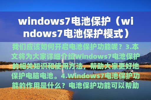 3. 本文将为大家详细介绍Windows7电池保护的相关知识和使用方法,帮助大家更好地保护电脑电池。