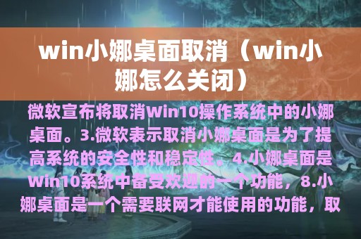 12. 微软取消小娜桌面是为了提高系统的安全性和稳定性,这也是对用户的一种保护。