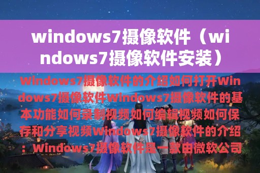 Windows 7摄像软件是一款由微软公司开发的视频拍摄和编辑软件,它可以帮助用户轻松地进行视频的拍摄、录制和编辑。该软件具有简单易用、功能齐全、操作方便等优点,深受广大用户的喜爱。